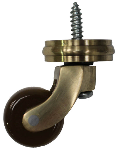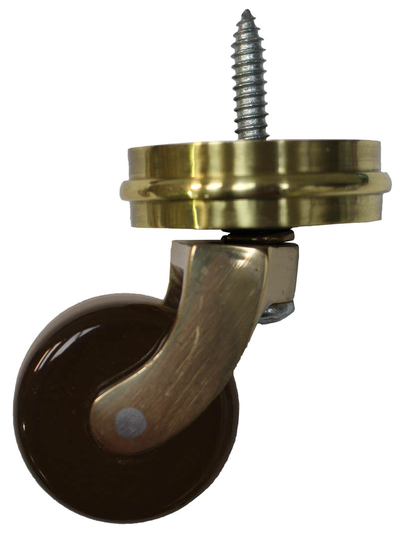 Brass Screw Castor with Brown Ceramic Wheel and Round Embellisher. Screw directly into wooden furniture frames to secure. This is a quality manufactured solid brass castor with a brown ceramic wheel and attractive round embellisher. The embellisher does remove so that the castor can be used without the embellisher if preferred. Widely used throughout the furniture industry by furniture manufacturers, upholsterers and interior designers. It has a solid brass embellisher, frame and wheel. Simply place the embellisher in place at the top of the castor then use a screwdriver to screw the castor directly into wooden furniture and then secure the underside plate with wood screws, which are included. Available in a range of sizes. Sold individually. Full dimensions and specifications for the castors are at the bottom of this page.