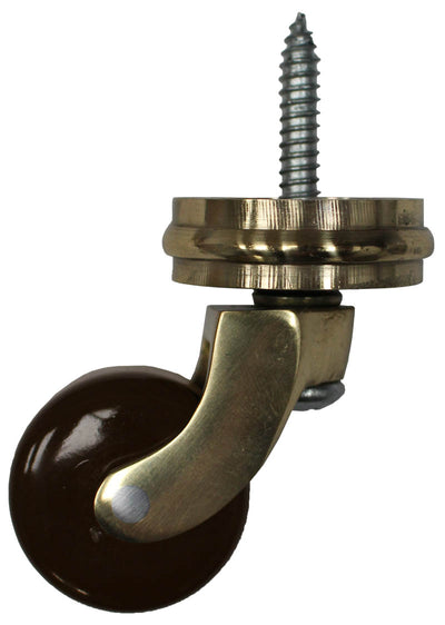 Brass Screw Castor with Brown Ceramic Wheel and Round Embellisher